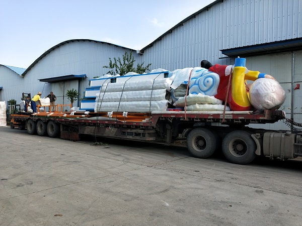 經過多日的疫情與雨季的肆虐,今日天氣晴朗,多套游樂設備今日統一發貨。今日發的游樂設備有花果山漂流、飛天史努比、24座豪華轉馬共三套,發往目的地新疆。