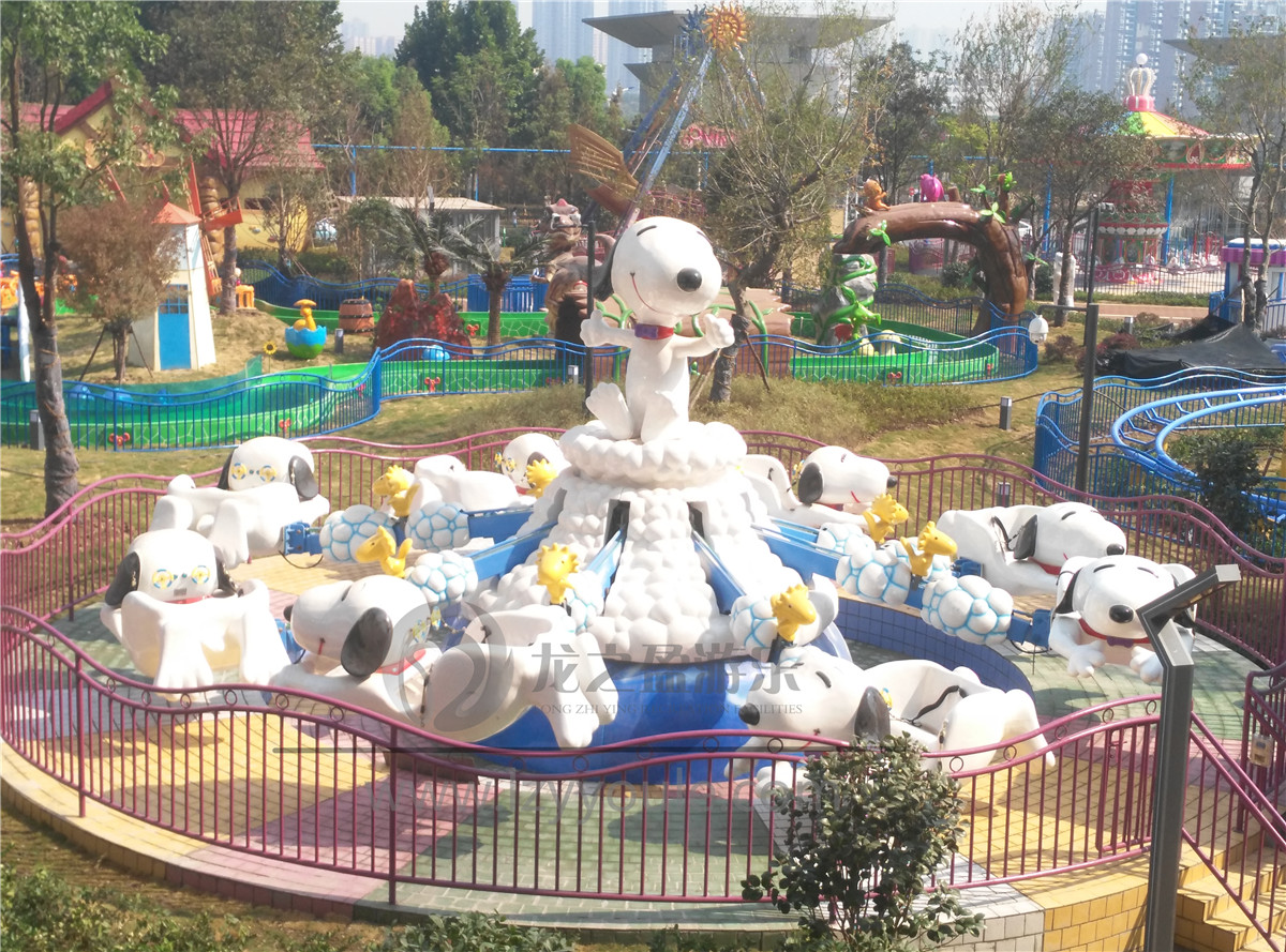 新型游樂(lè)設(shè)備——飛天史努比是許昌龍之盈游樂(lè)設(shè)備有限公司利用自控飛機(jī)原理,結(jié)合系列電影《史努比》元素,開(kāi)發(fā)的一款新型游樂(lè)項(xiàng)目,整體顏色以白色和藍(lán)色為主,像碧綠的海面一樣,在天空中飛翔的白色可愛(ài)的史努比像及了天空中飄浮的云朵,和藍(lán)色的天空相互呼應(yīng),承現(xiàn)出一幅碧海藍(lán)天的美麗景像!通過(guò)里面的控制,每個(gè)人都可以控制史努比飛行的高低,游客坐著可愛(ài)的史努比在藍(lán)色的天空下盡情地飛翔,超夢(mèng)幻的感覺(jué),更受市場(chǎng)的歡迎。